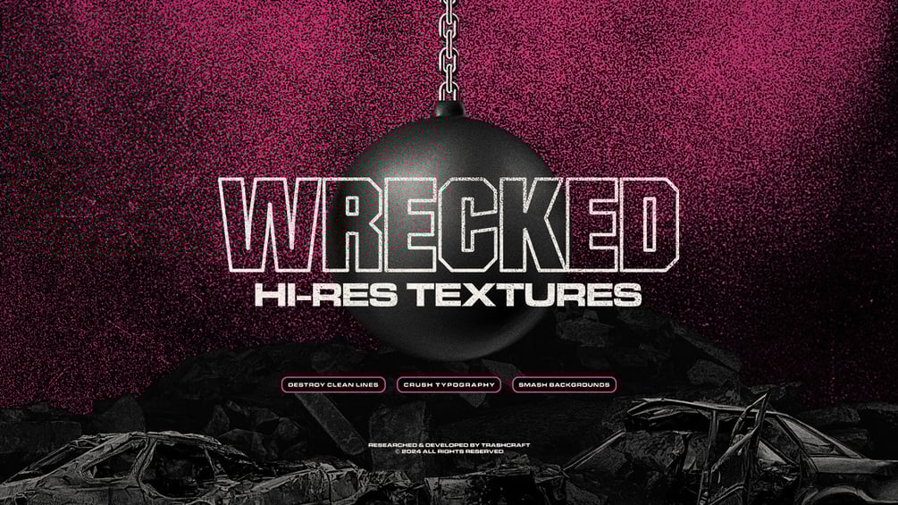 "Wrecked" features a diverse array of high-quality digital textures in PNG + PSD format.